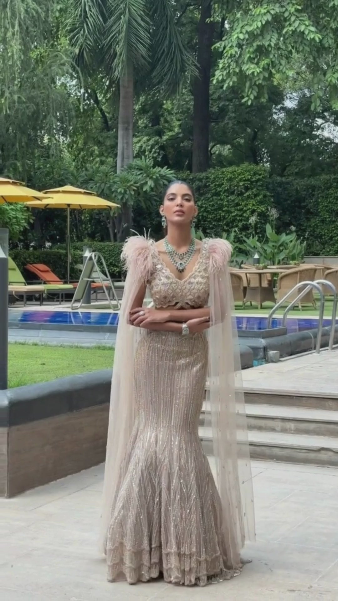 Golden Aura Feather-Cape Mermaid Lehenga